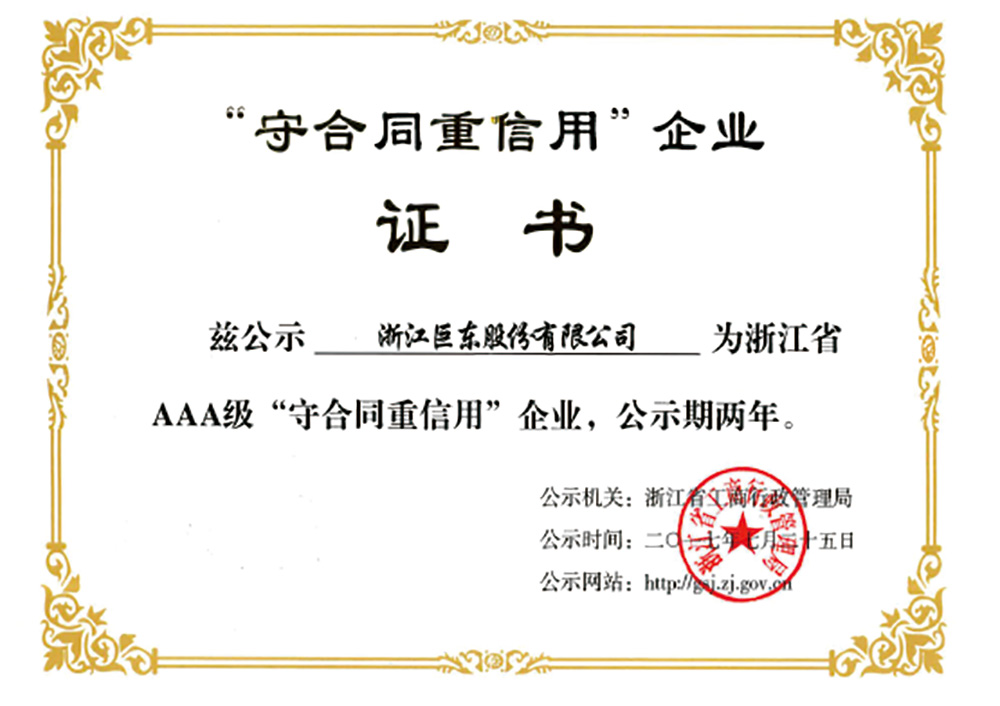 2017年浙江省AAA級(jí)守合同重信用企業(yè)